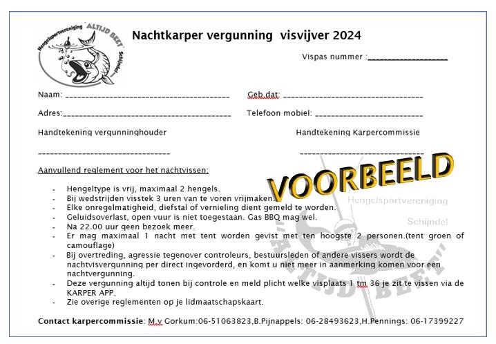 - Bij aanvragen nachtvergunning Vispas van Altijd Beet meebrengen.